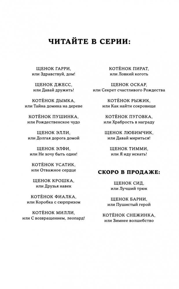 Девочка Кейт наконец-то упросила родителей завести щенка. И вот в доме появился Тимми – ласковый и озорной кокер-спаниель. Но у старшей сестры уже был питомец – кошка Мисти. Мисти и Тимми не поладили сразу – для немолодой кошки щенок оказался слишком шумным и беспокойным. А потом в один ужасный день Мисти исчезла. И старшая сестра решила, что виноват в этом Тимми. И теперь Кейт надо найти Мисти, помириться со старшей сестрой и придумать способ, как подружить кошку и щенка…