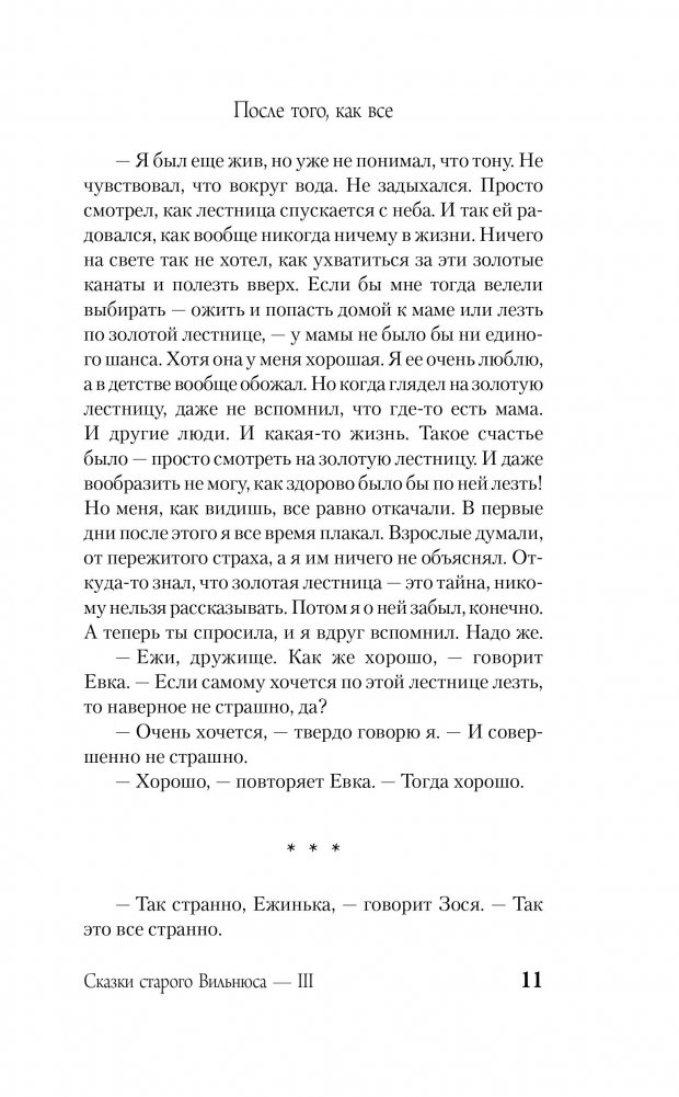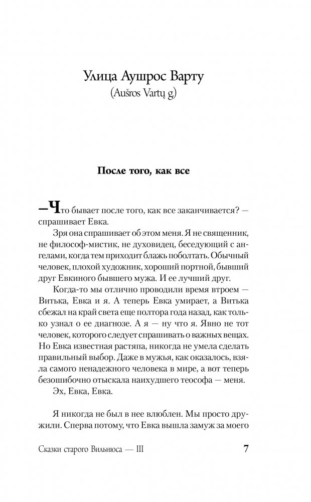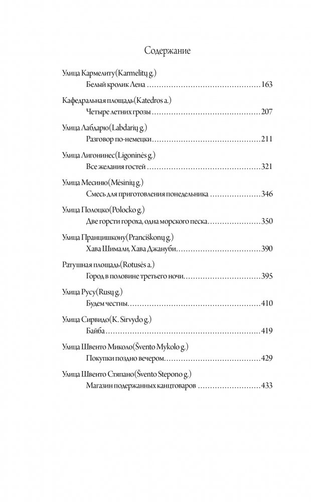 В Старом Городе Вильнюса 108 улиц, и на каждой что-нибудь да происходит. Здесь стираются границы между снами и явью, переписывается прошлое, из ниоткуда появляются карусели, любопытные ветры гуляют под руку с падшими ангелами, с неба спускаются золотые лестницы, и даже сама смерть, послушная городской примете, вертится на пятке посреди Кафедральной площади, загадывает желание, пока грохочет очередная летняя гроза.