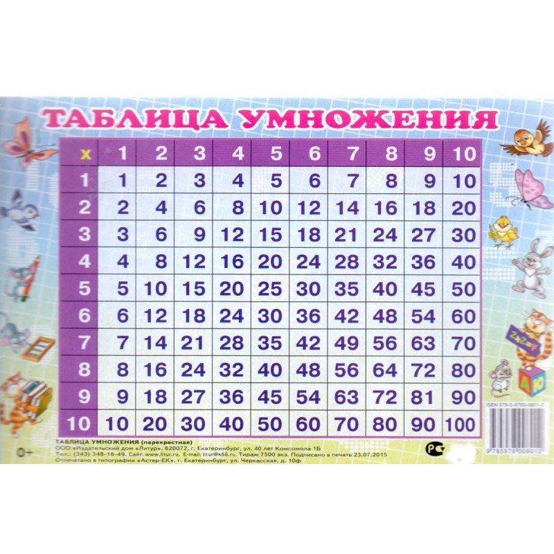 Таблица умножения перекрестная, 140x95 мм