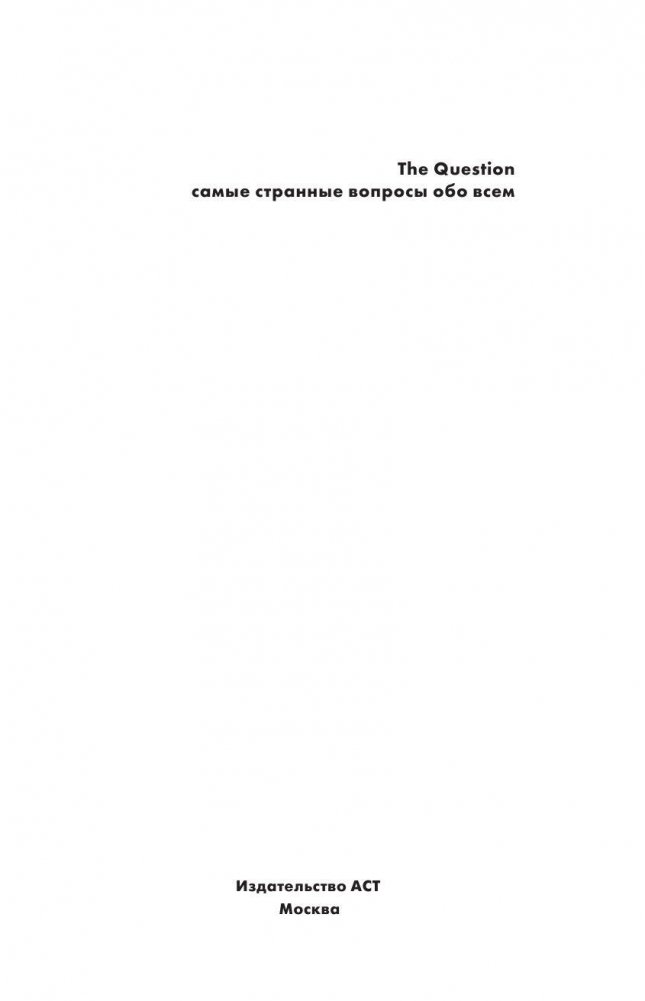 Бывают ли крокодилы добрыми? Кто на самом деле победил на выборах президента в 1996 году? Может ли в мозгу закончиться место для памяти? Почему в пупках возникают катышки? Каково было учиться в советской школе? Эти и другие вопросы задавали пользователи сервиса The Question, а мы в течение последнего года каждый день искали тех, кто даст ответы. В этой книжке 297 самых странных вопроса. Мы не гарантируем, что вы станете умнее, если прочитаете ответы на них, но, по крайней мере, о потраченном времени вы не пожалеете. Книга может вызывать острые приступы любопытства.