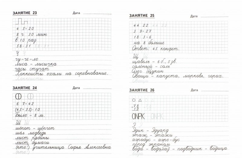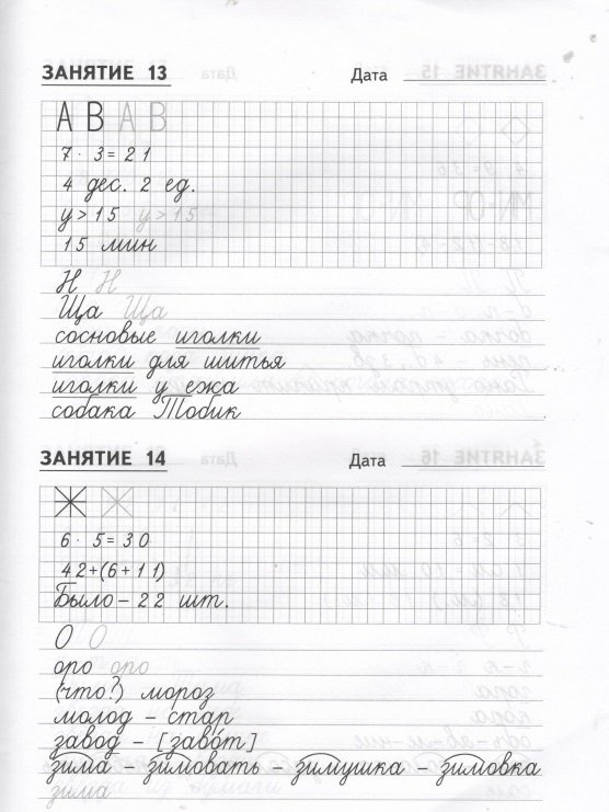 Комбинированные задания по чистописанию за 2 класс. 60 занятий по русскому языку и математике. ФГОС