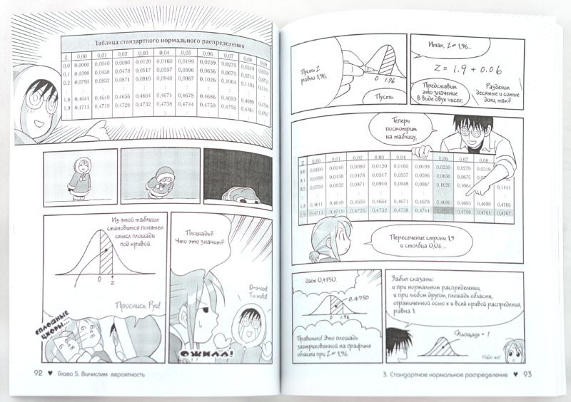 Если тебя интересует статистика, или тебе просто нужно как-то обработать данные, то «Занимательная статистика» поможет тебе преодолеть чувство, что «ты плохо знаешь математику». Этот иллюстрированный путеводитель легко и непринуждённо проведёт тебя по пути познания статистики. А полученные знания ты сможешь закрепить с помощью упражнений, без которых, как известно, не обходится ни одна книга по математике. Последуй за всегда невозмутимым Ямамото и ты увидишь, как он научит Руи: • рассчитать среднее значение, медиану и стандартное отклонение результатов игры в боулинг; • построить гистограмму цен на китайскую лапшу рамэн; • определить вероятность получения проходного балла на экзаменах по математике; • вычислить коэффициент Крамера, чтобы узнать, как предпочитают признаваться в любви юноши и девушки; • узнать, как нормируются результаты тестов, когда учителя оценивают успеваемость. Эти и другие примеры из реальной жизни позволят тебе с лёгкостью усвоить то, что многие находят трудным для понимания. Если ты хочешь разобраться в статистике, но от обычных учебников статистики у тебя пухнет голова и клонит в сон, или если тебе просто нужно освежить забытые знания, пусть Ямамото-сан и Руи будут твоими гидами. Книга будет полезна учащимся старших классов средних школ и колледжей, студентам вузов, а также всем, кто интересуется статистикой и хочет, чтобы обучение было лёгким и увлекательным.