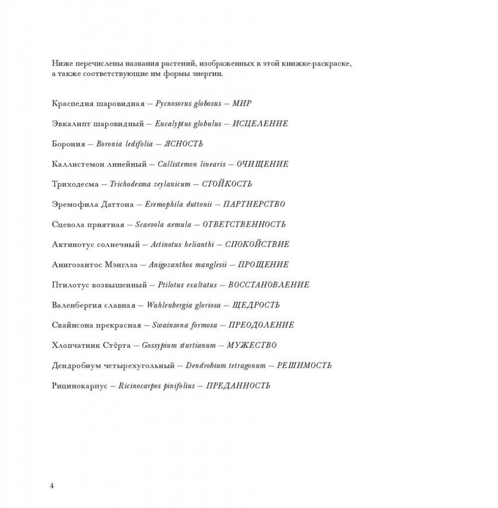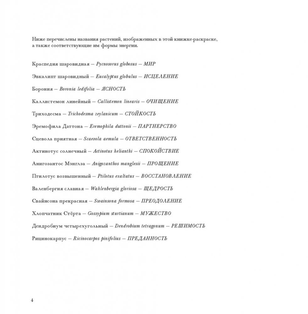 В этом альбоме вы найдете рисунки, созданные специально для того, чтобы наполнить вас вдохновляющей и исцеляющей энергией цветов. Геометрический калейдоскоп представленных здесь орнаментов заряжен красотой и творческой энергией природы. В их основе - удивительные растения, которые можно встретить в разных уголках Австралии: в пустынях, тропических лесах, на равнинах, в горах и на побережье. Раскрашивайте эти волшебные узоры фломастерами, карандашами, красками - чем угодно, лишь бы это успокаивало ваш ум и вдохновляло сердце.