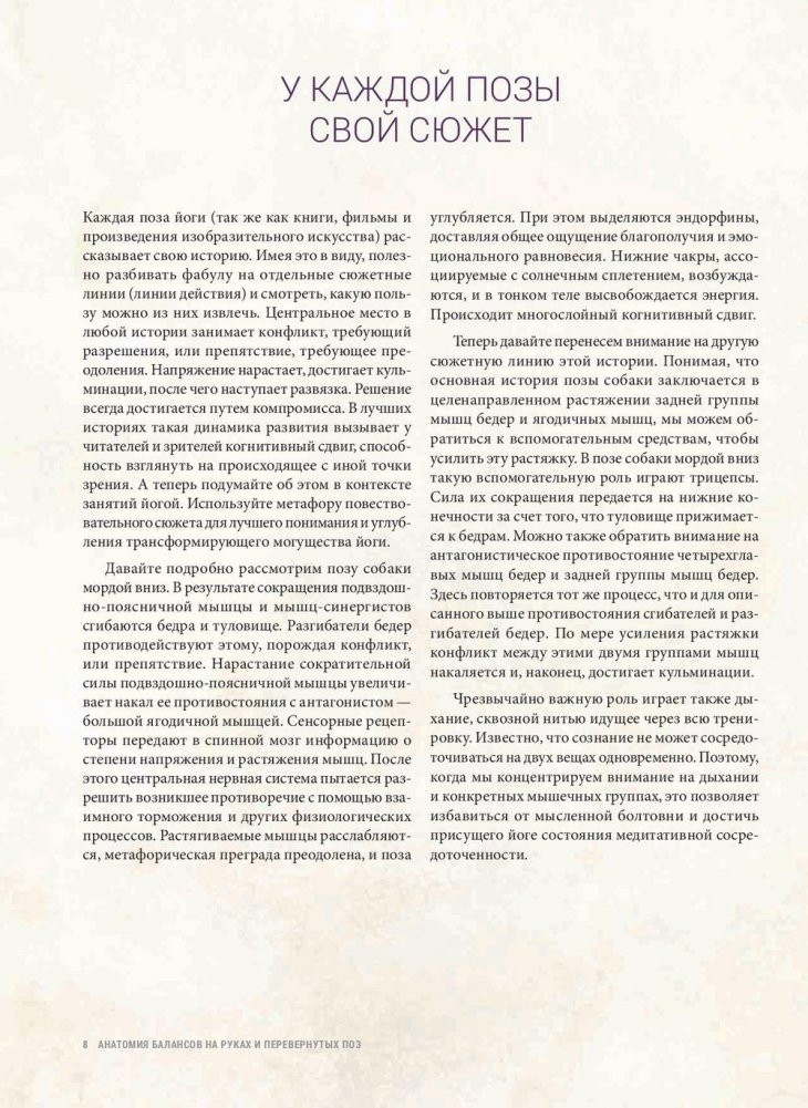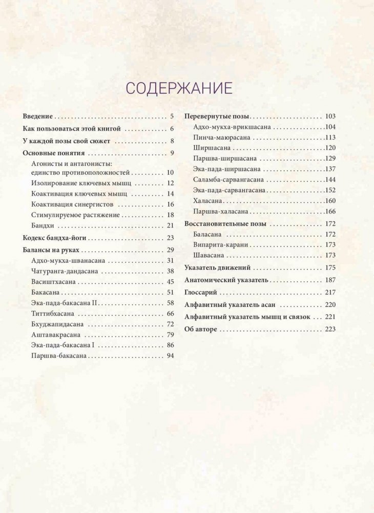 С помощью полноцветных трехмерных иллюстраций костей, мышц, сухожилий и связок доктор Рэй наглядно рассказывает об анатомии, биомеханике и физиологии древнего искусства йоги, попутно расшифровывая каждую позу. Книги серии «Инструктор йоги» содержат подробные иллюстрированные инструкции по выполнению асан с объяснением их научной подоплеки, что позволяет извлечь из них максимум пользы, какой бы стиль йоги вы ни практиковали. Разобравшись в анатомических вопросах, вы научитесь преодолевать трудности при выполнении тех или иных упражнений, оптимизировать свои занятия и избегать травм.