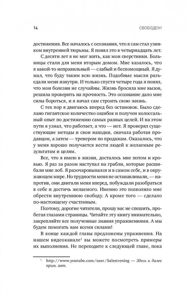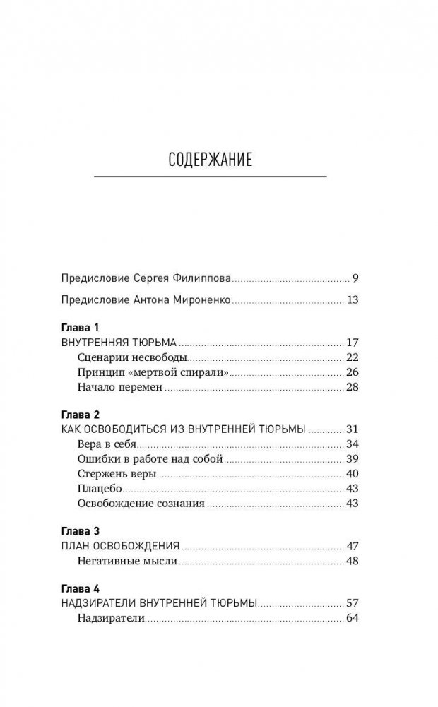 Мы постоянно попадаем в ловушки ложных представлений о жизни, стереотипов и страхов. Некоторые из них мы придумываем сами, например, чтобы оправдать свое бездействие или лень, другие — связаны с воспитанием, детскими травмами и принятыми в обществе установками. Все это приводит нас к состоянию внутренней несвободы — запирает в ментальной тюрьме. Мы оказываемся за крепкими стенами, отгораживающими нас от жизни, о которой мечтаем, хотя иногда и пытаемся убедить себя в обратном. И чем дольше мы не прикладываем усилия, чтобы выбраться из этой тюрьмы, тем сложнее нам это сделать. Книга содержит подробные практические рекомендации о том, как избавиться от психологических препятствий, которые мешают достигать целей и делать свою жизнь яркой и насыщенной, такой, какой всегда хотелось. Множество упражнений, специально разработанных авторами, поможет читателю успешно пройти этот путь.