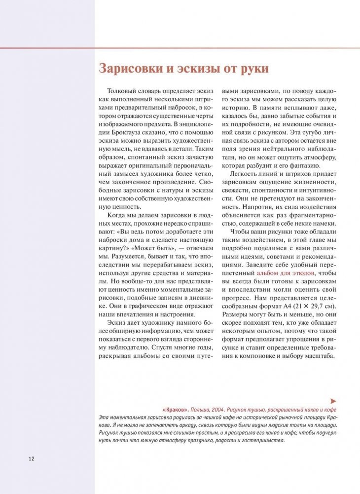 Умение делать зарисовки с натуры без разметки и вспомогательных линий представляется многим начинающим художникам недостижимым уровнем мастерства. Книга архитекторов Дитлинде и Юргена Занд наглядно демонстрирует, что это совсем нетрудно. Авторы делятся с нами основными принципами построения рисунка и на конкретных примерах шаг за шагом показывают, как эскизы делаются на практике. Многочисленные упражнения помогают вам усвоить теоретические знания, побуждают попробовать рисовать самому, позволяют набить руку и показывают: вам это тоже по силам!