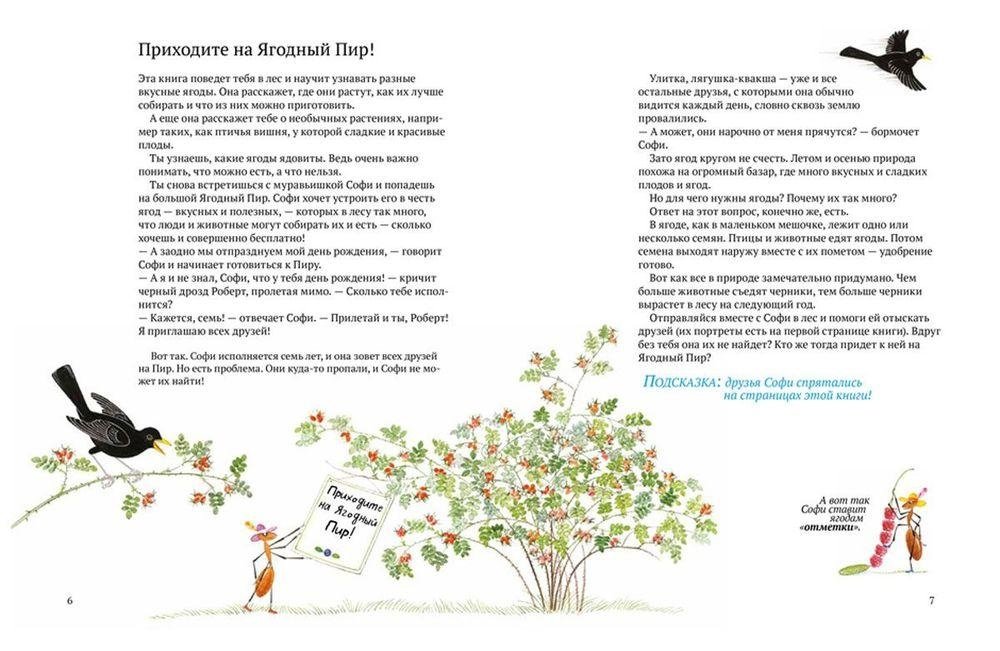 Умеешь ли ты отличать дикую малину от костяники? Знаешь ли, что ягоды можно собирать круглый год, даже зимой? А из какой ягоды получается самое вкусное желе? В этой книге мы расскажем о том, что за ягоды встречаются в наших лесах, научим тебя различать даже такие малоизвестные ягоды, как куманика, княженика и водяника. Ты узнаешь, какие ягоды ядовиты, а какие съедобны, как их лучше собирать и что из них можно приготовить. И главное: ты снова встретишься с муравьишкой Софи и попадешь на большой Ягодный Пир!