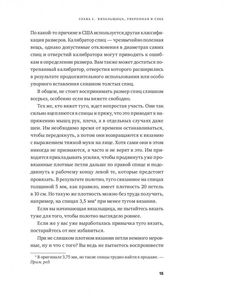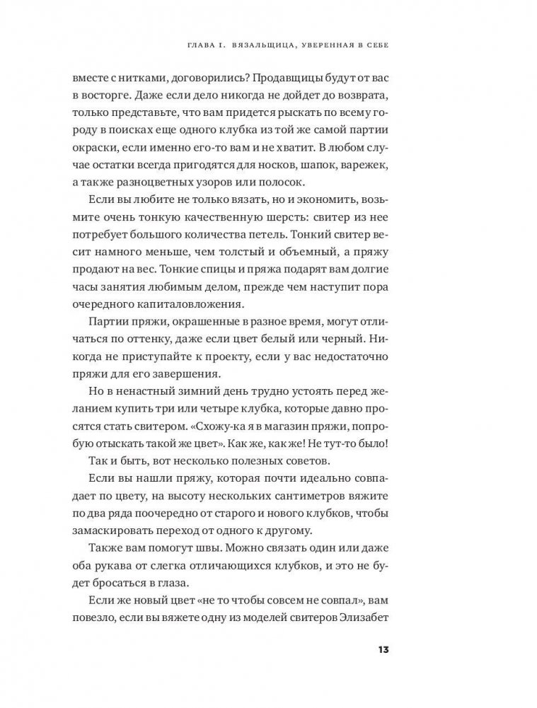 Вы любите вязать, но ненавидите изнаночные петли? Вы начали свитер, но у вас не хватает пряжи одного цвета из одной партии? Вы набираете петли, но у вас остается слишком длинный хвостик — или, наоборот, слишком короткий? Элизабет Циммерман приходит на помощь, предлагая успешные решения подобных проблем и пошаговые инструкции к оригинальным, никогда не устаревающим моделям. Мировой бестселлер уже на протяжении 45 лет! Книга, ставшая любимой для вязальщиц всего мира, теперь наконец и на русском языке!