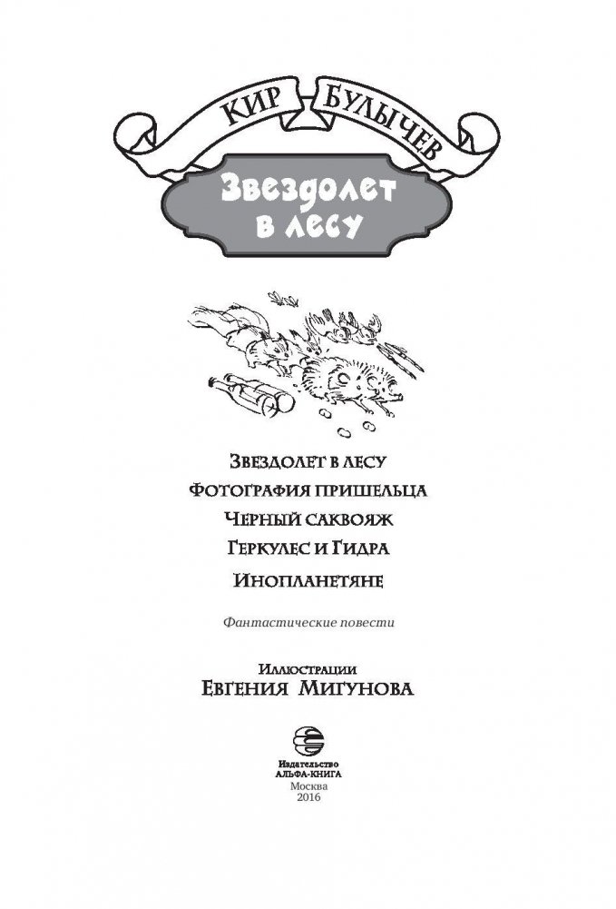 В сборник Кира Булычева вошли пять повестей: «Звездолет в лесу», «Фотография пришельца», «Черный саквояж», «Геркулес и Гидра» и «Инопланетяне». В первой повести трое отважных ребят — Сева, Олег и Марина спасают от жестоких кренгов, жаждущих захватить всю Галактику, маленького пришельца Дэ, который пытается предупредить галактический патруль о грозящей опасности. В повести «Фотография пришельца» странные события происходят на обычной детской площадке во дворе дома. Из соседнего леса принесли ненужный металлический хлам, который ржавел там много лет, и попытались устроить из него детский городок, но оказалось, что странная железяка хранит в себе тайну из далекого будущего, с таинственной звезды Барнарда. События повести «Черный саквояж» разворачиваются детективно-фантастическим образом. На Землю под видом людей прибывают инопланетяне, чтобы похищать у землян их идеи, изобретения и даже сильные эмоции... А для хранения похищенного используется с виду обыкновенный черный саквояж, который на самом деле является накопителем чувств. В повести «Геркулес и Гидра» археологи придумали прибор, который в любом предмете или его обломке пробуждает память его первоначального вида, что очень полезно для их изысканий, но некоторые алчные персонажи поспешили завладеть этим изобретением... В последней повести инопланетяне решили побаловать землян исполнением всех их желаний, что совсем не пошло людям на пользу. В издании воспроизводятся 53 иллюстрации самого известного иллюстратора Кира Булычева — Евгения Мигунова.