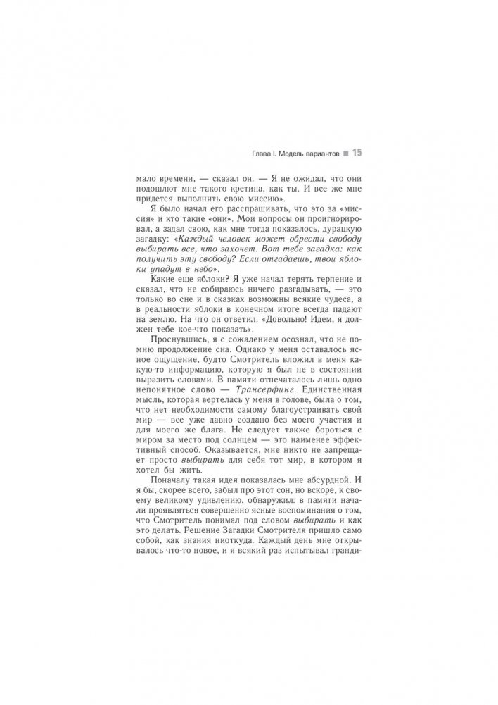 В книге «Трансерфинг реальности. Ступень I: Пространство вариантов» идет речь об очень странных и необычных вещах. Это настолько шокирует, что не хочется верить. Но вера и не потребуется – вы сами во всем убедитесь. Только будьте готовы к тому, что после чтения ваше привычное мировоззрение рухнет.