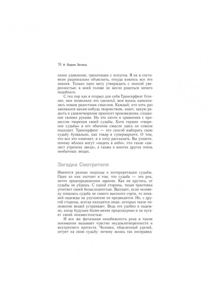 Трансерфинг – это мощная техника, дающая власть творить невозможные с обыденной точки зрения вещи, а именно – управлять судьбой по своему усмотрению. Никаких чудес не будет. Вас ожидает нечто большее – незнакомая реальность намного удивительней любой мистики. Вы испытаете непередаваемые чувства, когда обнаружите у себя способности, о которых и не подозревали. Это подобно ощущению свободного падения – невероятное имеет такую ошеломляющую дерзость превращаться в реальность, что просто дух захватывает!
