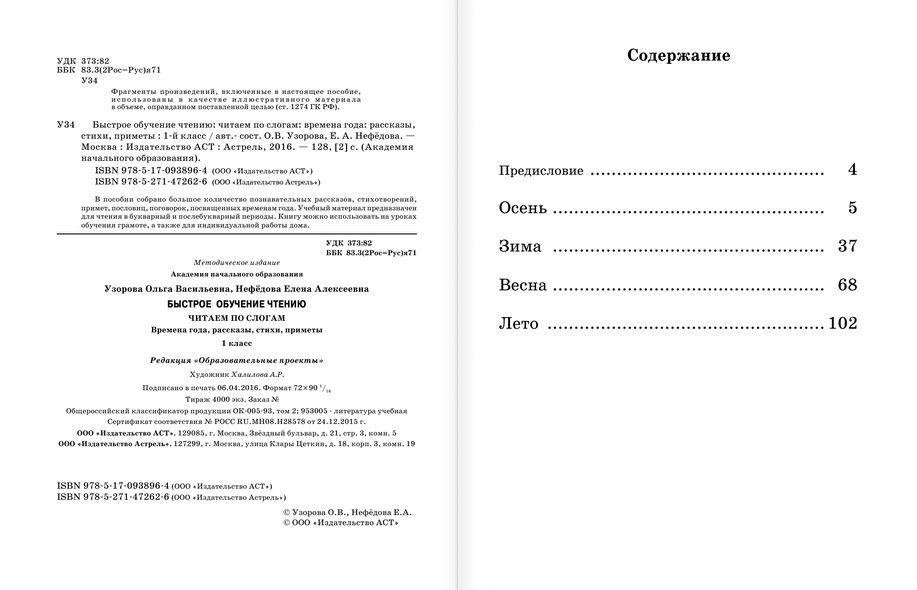 Быстрое обучение чтению. Читаем по слогам. Времена года. Рассказы, стихи, приметы. 1 класс