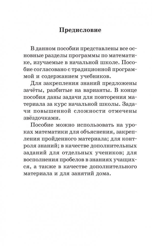В данном пособии представлены материалы для учащихся 1 – 4 классов по математике. Путём регулярных упражнений учащиеся усвоят навыки устных и письменных вычислений и научатся решать задачи, которые входят в программу начальной школы. Пособие содержит материал, направленный на формирование математических знаний, умений и навыков. Оно полезно всем школьникам в качестве дополнительного материала по математике. Пособие можно использовать для коллективной и индивидуальной работы в классе и дома.