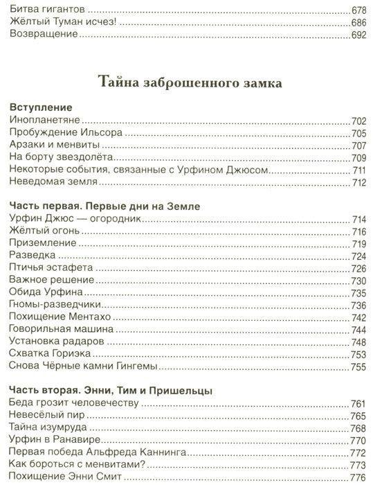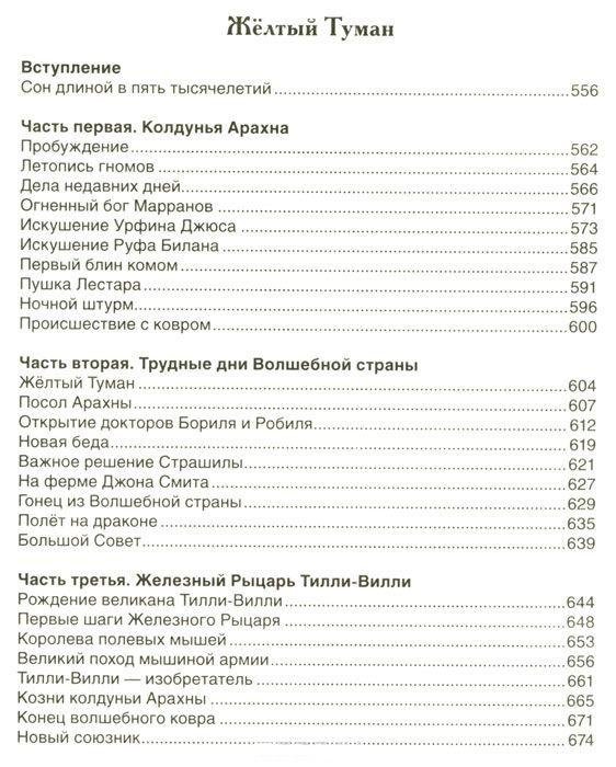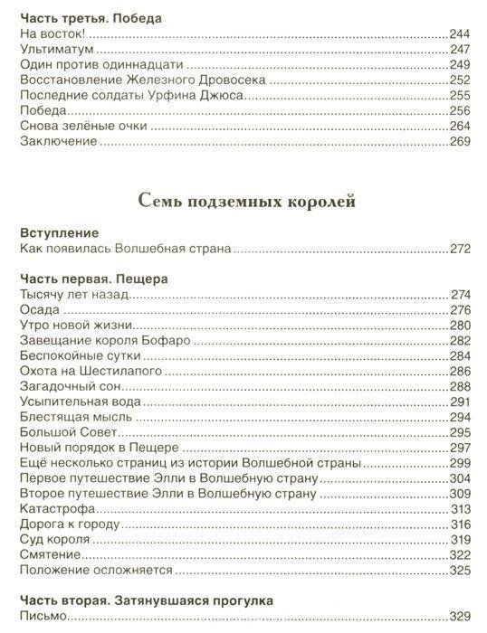 История об удивительных приключениях девочки Элли и ее песика Тотошки, веселого соломенного человека Страшилы, добросердечного Железного Дровосека и Смелого Льва очень понравилась детям, и они ни за что не хотели расставаться с любимыми персонажами. По многочисленным просьбам А. Волков написал еще пять сказок, где читатели вновь встречаются со знакомыми героями. В книгу вошли все шесть повестей о Волшебной стране: "Волшебник Изумрудного города", "Урфин Джюс и его деревянные солдаты", "Семь подземных королей", "Огненный бог Марранов", "Жёлтый Туман", "Тайна заброшенного замка".