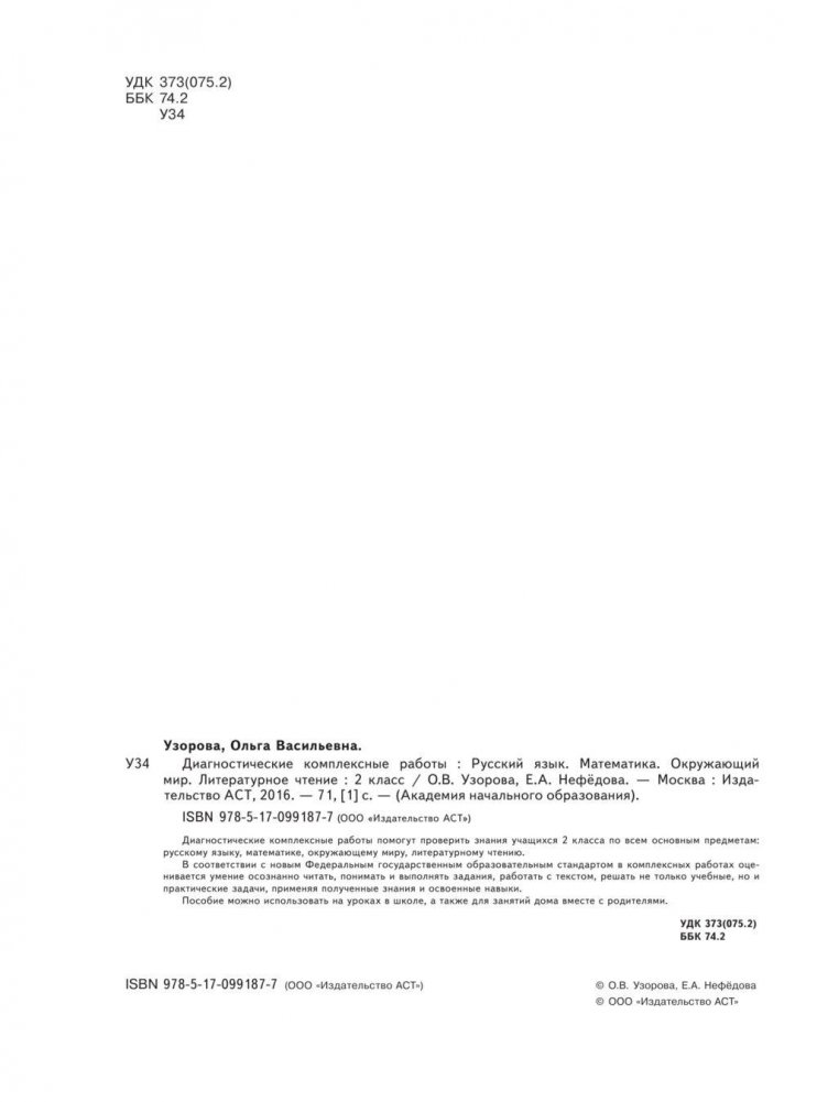 Диагностические комплексные работы. Русский язык. Математика. Окружающий мир. Литературное чтение. 2 класс