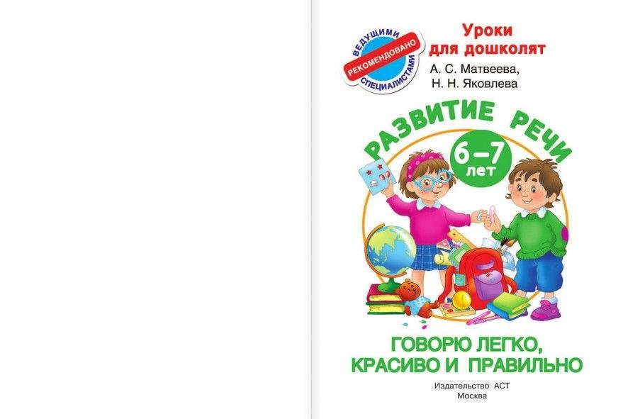 Книжка «Говорю легко, красиво и правильно. Развитие речи. 6 – 7 лет» поможет привить дошкольнику речевые навыки, которые пригодятся ему для успешной учёбы и отличных оценок. Эффективная авторская методика развития речи проверена многолетним успешным опытом А.С. Матвеевой и Н.Н. Яковлевой – известных специалистов в области логопедии, авторов более ста книг и развивающих пособий для детей, а так же педагогов и родителей. Для дошкольного возраста.