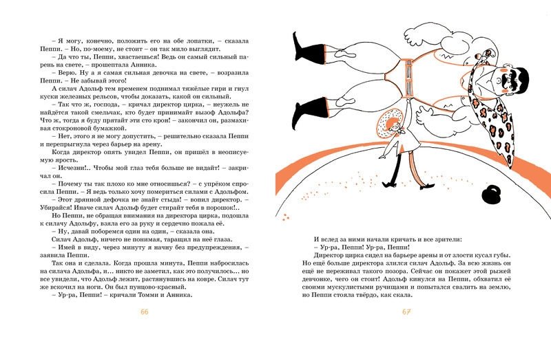Никого на свете нет сильнее Пеппи, она способна уложить на лопатки даже самого прославленного силача. Но не только этим знаменита Пеппи. Ещё она самая весёлая, самая непредсказуемая, самая озорная и самая добрая девочка в мире, с которой непременно хочется подружиться! Рисунки Л. Токмакова.
