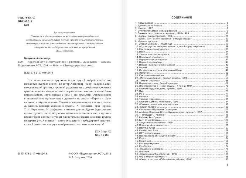 Эта книга написана друзьями и для друзей доброй сказки под названием «Король и шут». Ее автор Александр «Балу» Балунов, один из основателей группы, с иронией рассказывает о своей жизни, о жизни группы, истории создания песен и различных веселых и волшебных приключениях, случившихся с ним и его друзьями. Отправившись в увлекательное путешествие с друзьями по мирам «Король и Шут» вы точно не будете скучать. Своими воспоминаниями в книге делятся: А. Князев, главный сказочник группы, А. Горшенев, брат Горшка, Т.И. Горшенева, М. Нефедова и многие другие. Где-то будет весело, где-то грустно, где-то безумство фантазии захлестнет вас, а где-то и просто будет интересно узнать удивительные факты из жизни группы из первых рук. А главное – автор обращается к тебе, дорогой читатель, к твоей фантазии, юмору и воображению, так что смелее в путь!