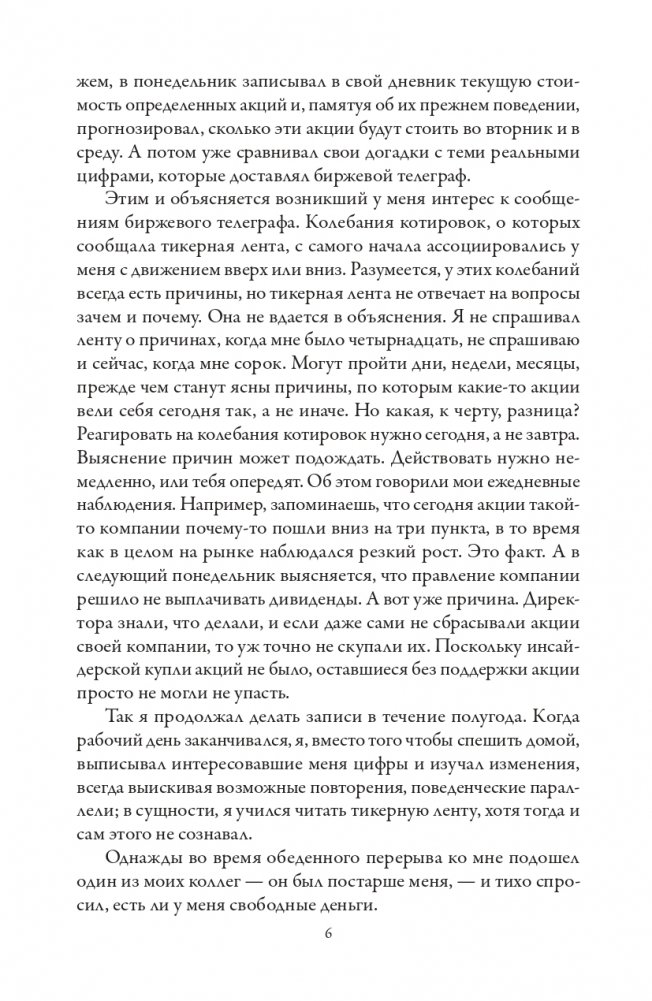 Это художественная биография, пожалуй, одного из самых величайших в истории финансовых гениев, Джесси Ливермора, рассказывающая всю правду о психологии рынков, инвестиций и биржевой игры. В своей книге Эдвин Лефевр описывает большое количество трейдовых стратегий, приемов и уловок, которые использовал легендарный мастер, делится бесценным опытом, полученным его героем, выдает множество интересных фактов из мира финансов и жизни знаменитого маклера. На этой классической книге, впервые изданной в 1923 году, выросло уже не одно поколение блестящих финансистов. Благодаря своему гениальному содержанию сегодня "Воспоминания биржевого спекулянта", как и почти век назад, остаются актуальным руководством для трейдеров.