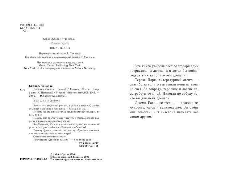 Это – не «любовный роман», а роман о любви. О любви обычных мужчины и женщины – таких, как мы… Почему же эта книга стала абсолютным бестселлером во всем мире? Почему она трогает душу читателей самого разного возраста и интеллектуального уровня? Как Николасу Спарксу удалось повторить сенсационный успех «Истории любви» и «Неспящих в Сиэтле»? Почему фильм, снятый по роману «Дневник памяти», имел огромный успех во всем мире? Объяснить это невозможно. Прочитайте «Дневник памяти» – и поймете сами!