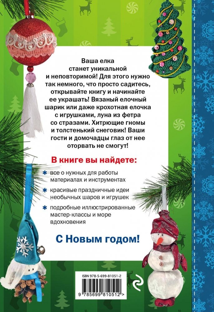 Елочные шары, сделанные своими руками, – традиционные новогодние украшения, которые могут получиться невероятно красивыми благодаря применению простых декоративных техник – аппликации, декупажа и других. В книге представлены оригинальные варианты елочных шаров, каждый из которых вы легко сможете сделать не более чем за полтора-два часа. Никаких специальных навыков или дорогостоящих материалов вам не потребуется, главное – желание создавать красоту своими руками и точное следование понятным и наглядным инструкциям, приведенным в книге.