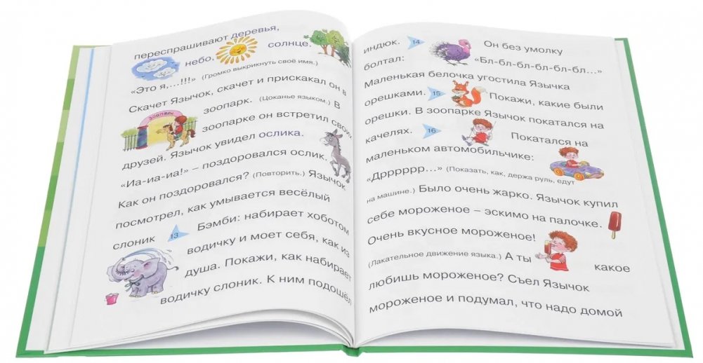 Что такое артикуляционная гимнастика? Артикуляционная гимнастика, которую вы найдёте в нашей книжке, - это комплекс упражнений, одни из которых помогают улучшить подвижность органов артикуляции, другие - увеличить объём и силу движений, третьи вырабатывают точность позы губ, языка, необходимую для произнесения того или иного звука. Чем поможет эта гимнастика ребёнку? Оказывается, язык - главная мышца органов речи. Язык должен быть достаточно хорошо развит, чтобы выполнять тонкие целенаправленные движения, именуемые звукопроизношением. Детям двух, трёх, четырёх лет артикуляционная гимнастика поможет быстрее "поставить" правильное звукопроизношение. Дети пяти, шести лет и далее смогут при помощи артикуляционной гимнастики во многом преодолеть уже сложившиеся нарушения звукопроизношения. Для чего нужна артикуляционная сказка? Для маленьких детей занятия артикуляционной гимнастикой - труд, серьёзная работа, какими бы лёгкими ни казались эти упражнения для вас. Чтобы ребёнок не отвлекался и не уставал, мы постарались превратить эту работу в весёлую игру, волшебную сказку, в которую, как вы увидите, включены артикуляционные упражнения. Кроме того, в наших сказках артикуляционная гимнастика сочетается с забавными движениями и жестами. Поэтому освоение развивающего материала будет и увлекательным, и несложным, особенно если взрослый не просто поможет малышу, но станет выполнять упражнения вместе с ним, терпеливо, ласково и спокойно направляя ребёнка. Издание развивающего обучения для детей дошкольного возраста.