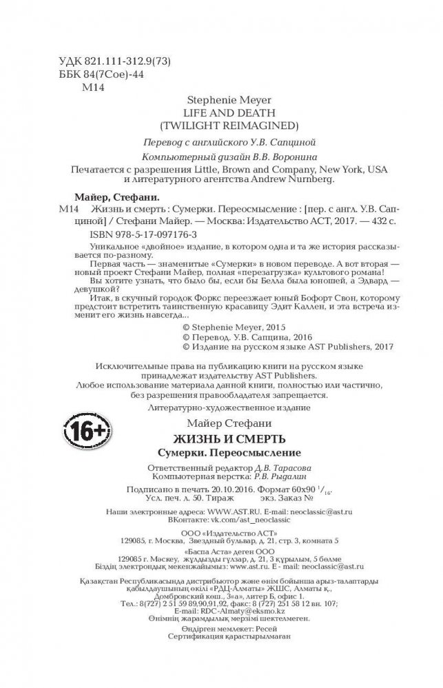 Первая часть уникального «двойного издания» - знаменитые «Сумерки» в новом переводе. А вот вторая - новый проект Стефани Майер, полная «перезагрузка» культового романа! Вы хотите узнать, что было бы, если бы Белла была юношей, а Эдвард - девушкой? Итак, в скучный городок Форкс переезжает юный Бофорт Свон, которому предстоит встретить таинственную красавицу Эдит Каллен, и эта встреча изменит его жизнь навсегда...