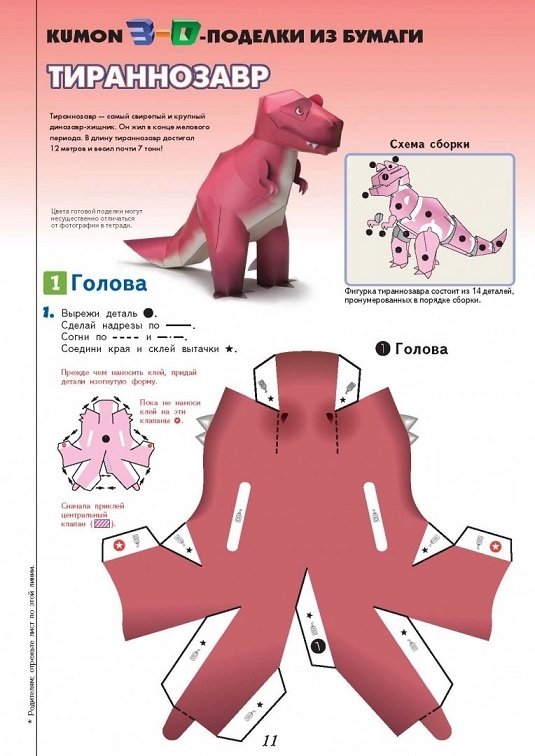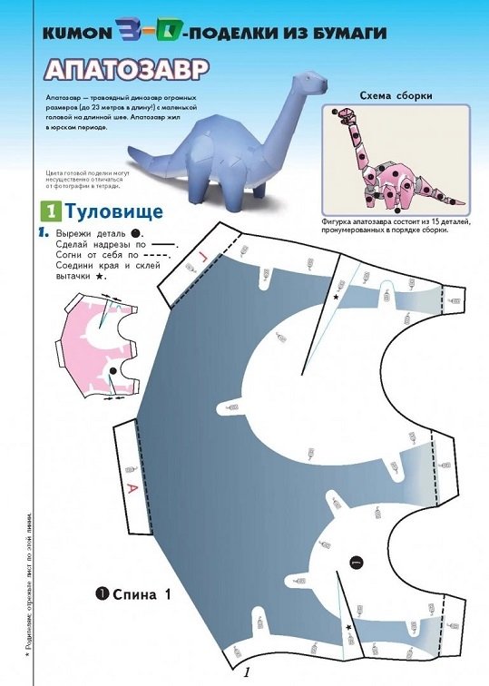 KUMON. 3D поделки из бумаги. Тираннозавр и апатозавр