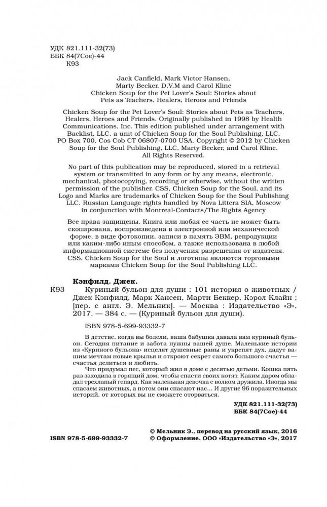 Куриный бульон для души: 101 история о животных
