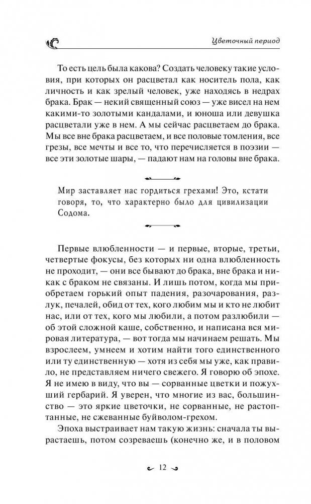 Эта книга соткана из отголосков самых разных историй, услышанных автором на исповеди, и просто в обычных разговорах «по душам». Ее темы продиктованы самыми частыми вопросами на многочисленных публичных встречах отца Андрея с самыми разными аудиториями по всей стране. Естественно, здесь не найти ни имен, ни фамилий — все испытания, о которых говорит автор, могут выпасть каждому. И темы, нашедшие в этой книге отражение, близки нам всем, одиноким и семейным, влюблённым и «остывшим». Кто мы, мужчины и женщины, друг другу? Как встретить свою «половинку»? И есть ли они, эти «половинки»? Как понять, что этот человек — твой? Что делать, если любовь не приходит? А если она слабеет и грозит исчезнуть? Как побеждать искушения и соблазны, как удержать от них родных и близких? Где те подводные рифы, что грозят счастливой семье, и как их избежать? Создать семью, сохранить семью, жить в семье, строить отношения с родителями и детьми, вместе преодолевать перипетии и трудности — эта книга о настоящем человеческом счастье и для романтичных юношей и девушек, и для зрелых мужей и жен, и для мудрых бабушек и дедушек. Самый ценный опыт, собранный и изложенный одним из самых популярных православных священников.