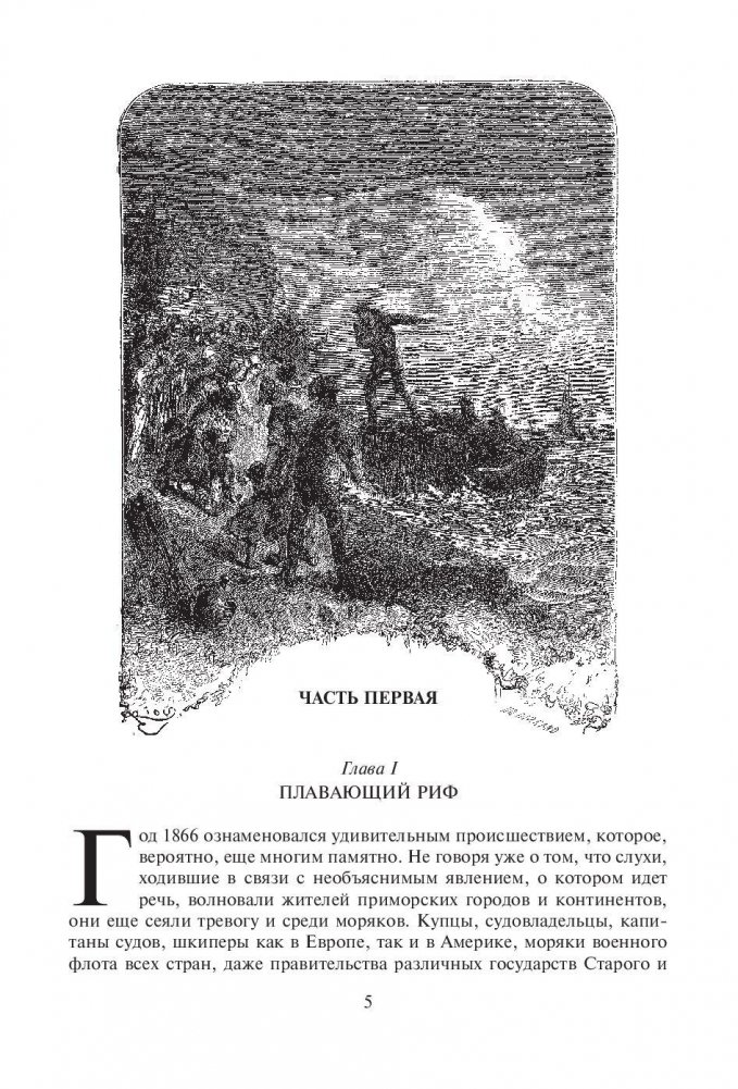 В море обнаружено огромное, неизвестное науке чудовище! То ли гигантский глубоководный кальмар, то ли разновидность кита. Профессор биологии Аронакс в составе международной экспедиции отправляется на охоту за этим ужасным созданием, а в итоге вместе со своим слугой Конселем и канадским гарпунером Недом Лендом оказывается пленником на борту «Наутилуса» — невероятного по своим техническим возможностям подводного корабля, созданного инженерным гением своего хозяина — капитана Немо. В настоящем издании воспроизводится полный комплект из 111 иллюстраций известных французских художников А. де Невилля и Ж. Ру.