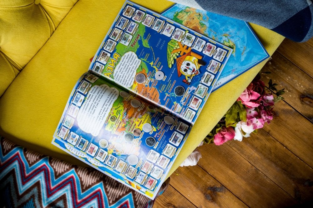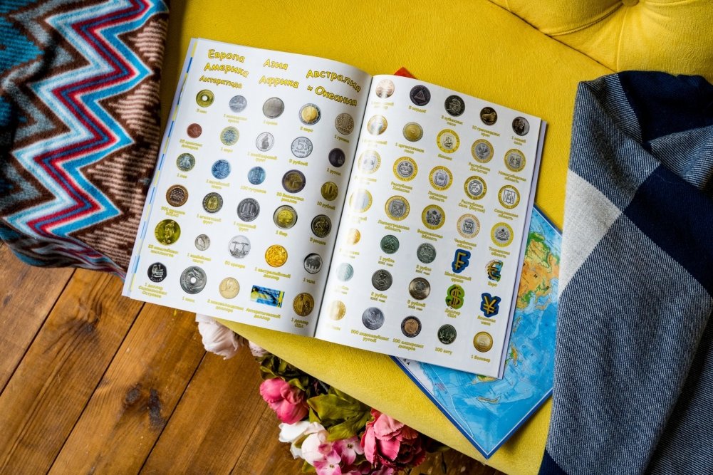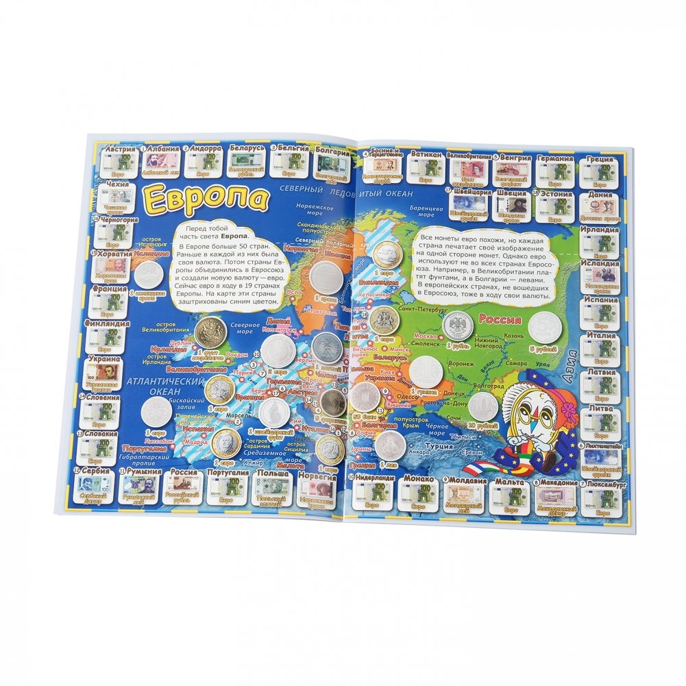 Детский атлас мира с наклейками. Деньги