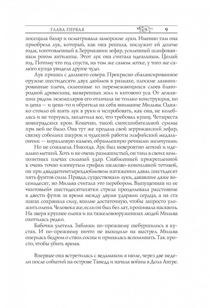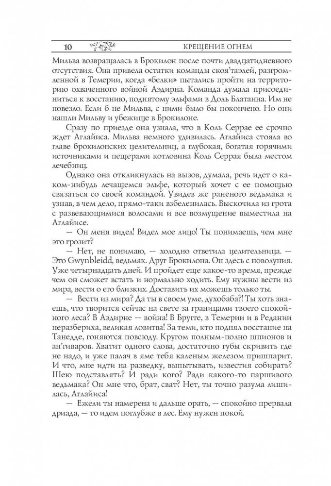 Огонь полыхает над разоренными войной землями, пожирая целые народы и стирая с карт границы прежних государств. И по этим горьким землям, заполненным беженцами и дезертирами, солдатами и мародерами, чудовищами и людьми, что в единый миг стали зверее зверя, идет беловолосый ведьмак – с мечом за спиной и искрой надеждой в сердце. Идет, сам толком не зная, куда. Идет, потому что не может не идти. Но, чтобы осилить этот путь, нужно выдержать крещение огнем. Испытание на прочность. Испытание на верность. Испытание, из которого никто не выйдет прежним… Сага А. Сапковского давно занимает почетное место в мировой традиции жанра фэнтези, а Геральт стал культовым персонажем не только в мире литературы, но и в универсуме компьютерных игр. Пятая книга из цикла «Ведьмак» впервые выходит с иллюстрациями Дениса Гордеева, созданными специально для этого издания.
