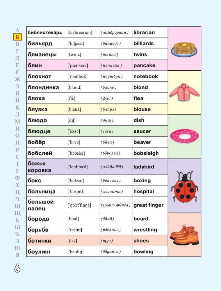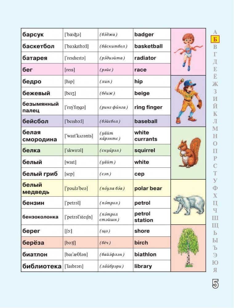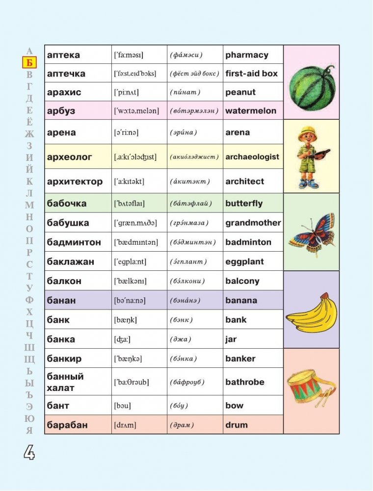 Русско-английский словарик в картинках для начальной школы