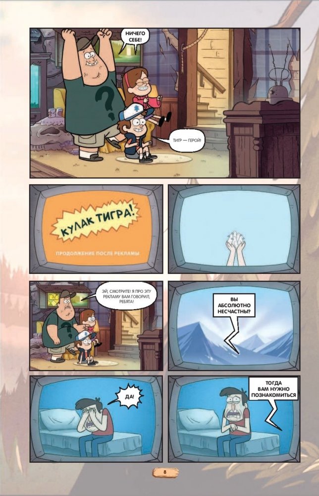 Этот комикс - настоящая находка для всех фанатов мультсериала Gravity Falls. Сюжеты первых серий будут интересны и давним поклонникам сериала и тем, кому только предстоит окунуться в тайны маленького орегонского городка.