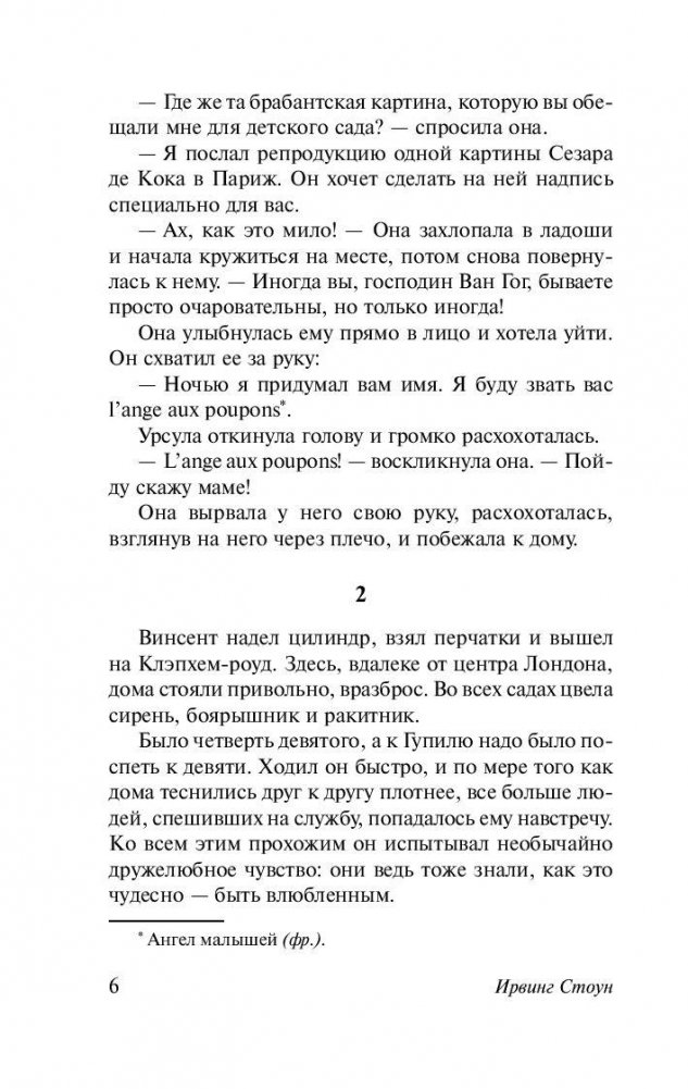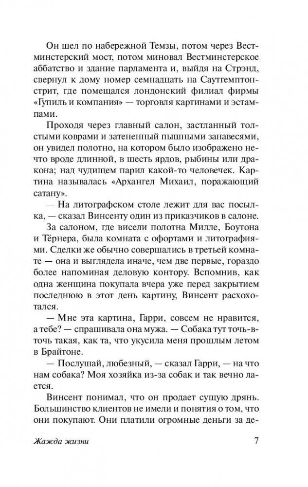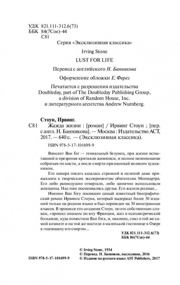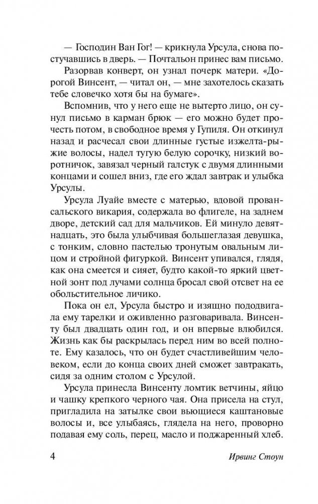 Винсент Ван Гог – гениальный безумец, при жизни испытавший и презрение критиков живописи, и полное непонимание собратьев по кисти, а после смерти признанный великим художником. Его манера писать казалась странной и нелепой даже привыкшим к творческим экспериментам обитателям Монмартра. Его либо равнодушно отвергали, либо цинично использовали женщины. Над ним посмеивались друзья. Его жалели родные… Именно Ван Гогу посвящен самый известный биографический роман Ирвинга Стоуна, который выдержал более 30 изданий только на родном языке и был переведён на 30 иностранных языков. В процессе его создания, Стоун, по его собственным словам, «прошел пешком по югу Франции, жил в психиатрической больнице, куда поместили Ван Гога, и, наконец, спал в той же самой комнате и на той же постели в маленькой гостинице в Овере в годовщину его смерти»…
