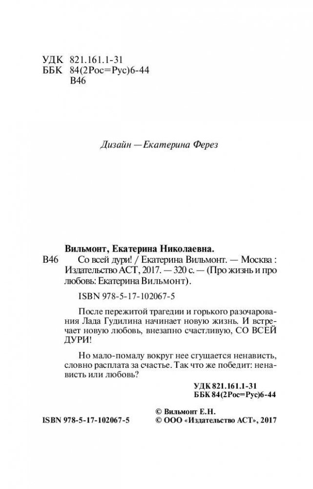 После пережитой трагедии и горького разочарования Лада Гудилина начинает новую жизнь. И встречает новую любовь, внезапно счастливую, СО ВСЕЙ ДУРИ! Но мало-помалу вокруг нее сгущается ненависть, словно расплата за счастье. Так что же победит: ненависть или любовь?