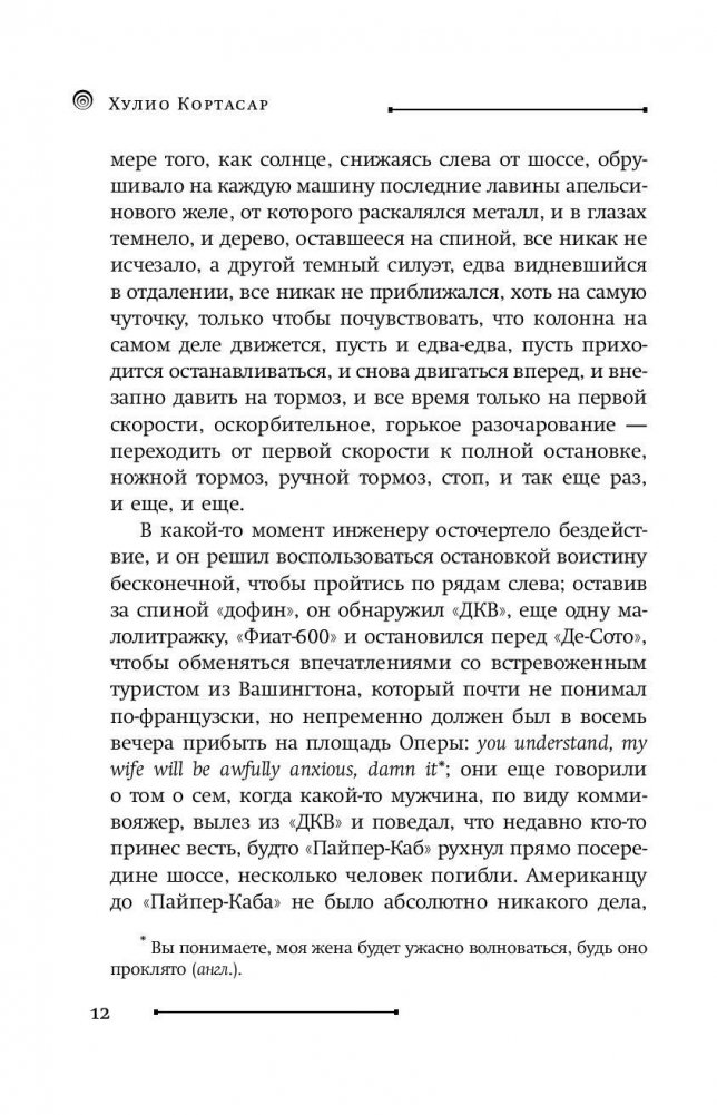 В своих произведениях Кортасар мастерски переплетает обыденную жизнь с фантастическим вымыслом, его герои почти всегда существуют в двух ипостасях – в тесных границах своей телесной оболочки и в безграничном пространстве сознания. Кортасар – один из немногих, кто сумел удержаться на этой тонкой грани между яркой чувственной реальностью и бесплотной фантазией. В книгу вошли авторские сборники писателя «Все огни – огонь», «Восьмигранник», «Тот, кто бродит вокруг».