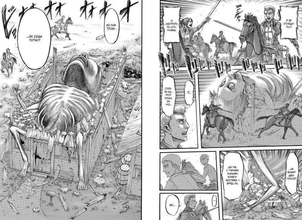 Разведкорпус с помощью Эрена смог захватить загадочную женщину-титана. Наконец бойцы узнают, кто противостоял им в облике смертоносной великанши. Не успев толком справиться с этим потрясением, люди сталкиваются с новой загадкой – тайна великих стен оказывается не менее шокирующей. И в разгар всеобщего смятения приходит известие, которое способно до основания потрясти заключенный внутри стен человеческий мир.