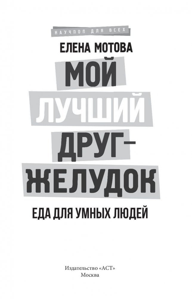 Елена Мотова – врач-диетолог и научный журналист. Постоянно учится, любимый из пройденных курсов – Nutrition for Health Promotion в Калифорнийском университете (UCSF). Ведет нескучный блог о доказательной диетологии. Читает лекции о питании и пищевом поведении. Хорошо готовит и с удовольствием ест. Как работают желудок, печень и кишечник? Одинаково ли мы чувствуем вкус? Перед вами – новый формат книги о питании. Вы узнаете не только о пищеварении и обмене веществ, но и о том, как мозг и гормоны регулируют вес. Каким образом формируются пищевые привычки, почему люди толстеют после диет и зачем нам нужны разные питательные вещества – на эти и другие вопросы отвечает наука о питании. Врач-диетолог Елена Мотова написала эту книгу на основе цикла практических занятий. Это истории о диетологии, новые медицинские исследования и советы по изменению пищевого поведения в одном флаконе. От мифов о питании камня на камне не останется. Осторожно, доказательная диетология!