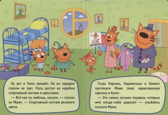 Каждый день Коржика, Компота и Карамельки наполнен забавными приключениями. Читайте об этом на страницах новых мини-книг три кота.