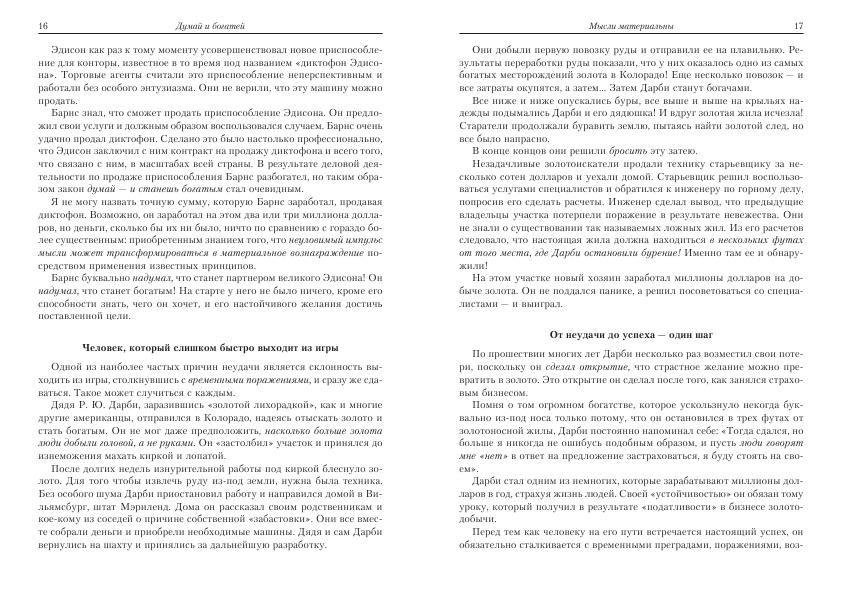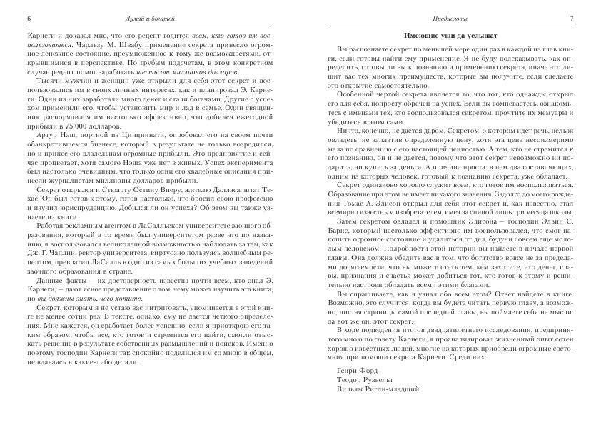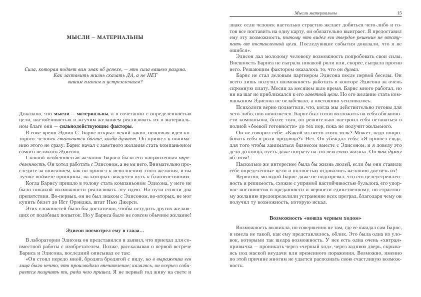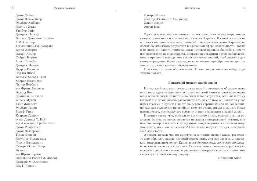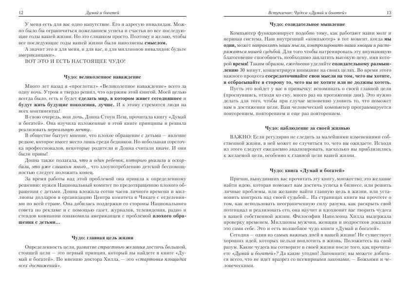 Книга давно получила статус непревзойденного классического учебника и до сих пор служит стандартом для так называемой мотивационной литературы. Теперь ее текст укомплектован кратким, но доступным и исчерпывающим руководством по изучению и применению блестящих и плодотворных идей автора в ваших повседневных делах. Освоив сполна эту важную науку, вы сумеете достичь успеха на пути к богатству и счастью.