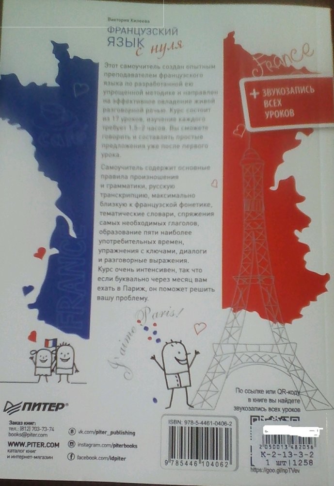 Этот самоучитель создан опытным преподавателем французского языка по разработанной ею упрощенной методике и направлен на эффективное овладение живой разговорной речью. Курс состоит из 17 уроков, изучение каждого требует 1,5-2 часа. Вы сможете говорить и составлять простые предложения уже после первого урока. Самоучитель содержит основные правила произношения и грамматики, русскую транскрипцию, максимально близкую к французской фонетике, тематические словари, спряжения самых необходимых глаголов, образование пяти наиболее употребительных времен, упражнения с ключами, диалоги и разговорные выражения. Курс очень интенсивен, так что если буквально через месяц вам ехать в Париж, он поможет решить вашу проблему. Аудиокурс вы можете скачать по ссылке.