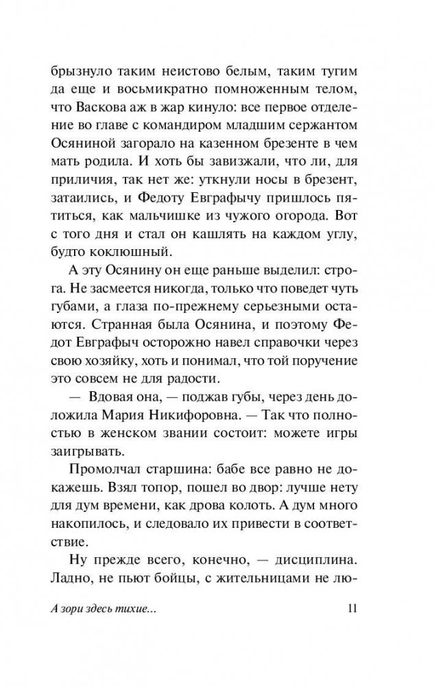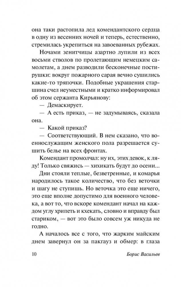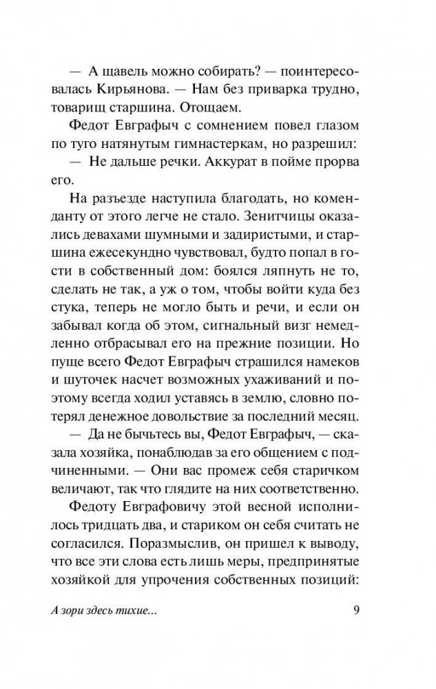 Пять совсем еще юных девушек-зенитчиц под руководством старшины вступают в неравный бой с отрядом немецких диверсантов. Об этом великом, однако не попавшем в сводки военных событий подвиге повесть «А зори здесь тихие…» – шедевр русской «военной прозы», одно из самых проникновенных и трагических произведений о Великой Отечественной войне. Действие повести «Завтра была война» происходит накануне Великой Отечественной войны. Это история о школьниках, их взрослении, первом нравственном выборе и противостоянии, история о выпускниках, которым совсем скоро предстоит взять в руки оружие и отправиться на фронт – защищать Родину.