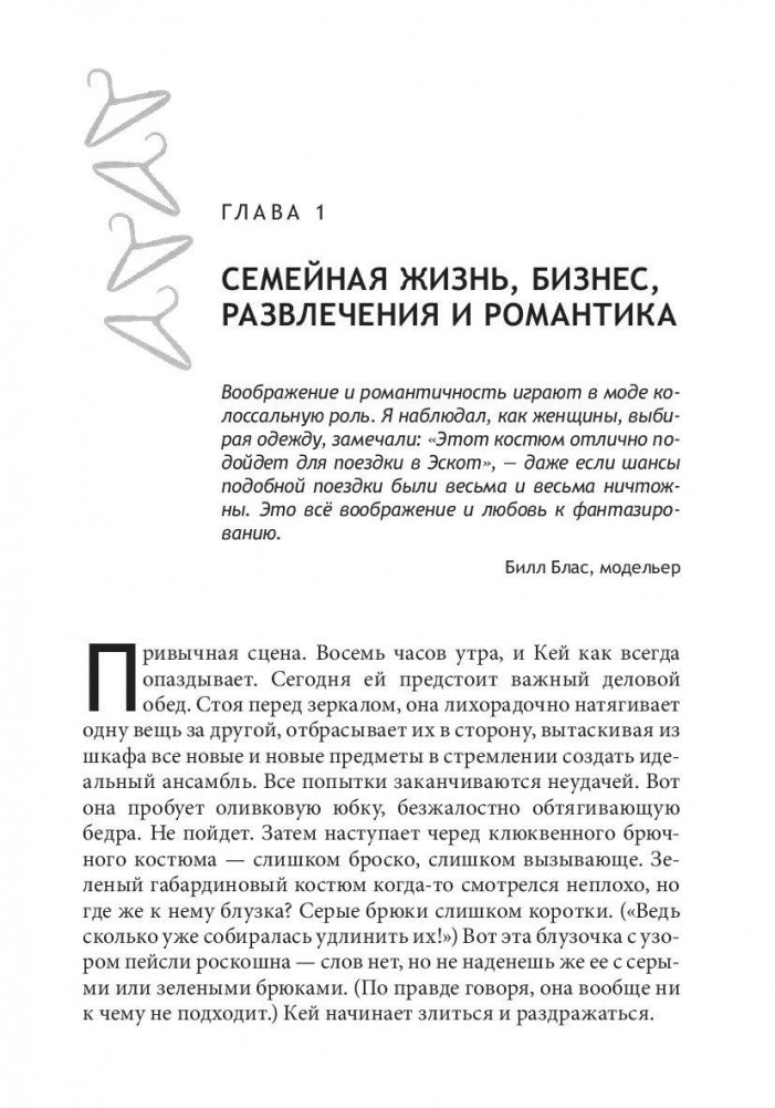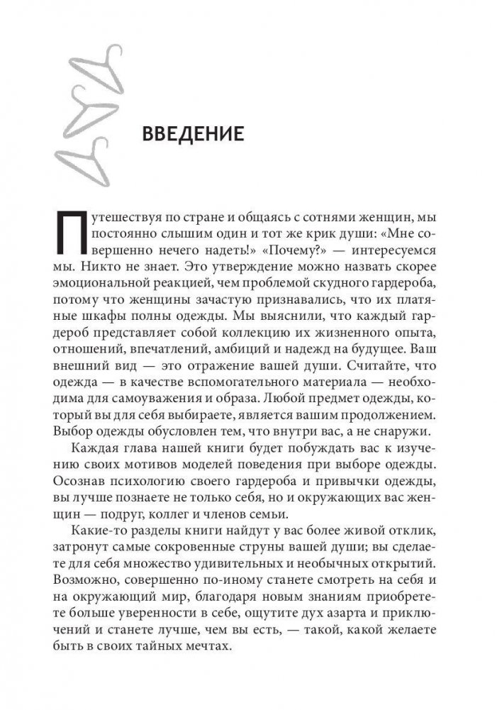 Восемь часов утра. Впереди долгий день. Стоя перед шкафом, вы вытаскиваете костюм, который следовало перешить уже два года назад, потом блузку, которая ни к чему не подходит, потом туфли, которые... и зачем вы их, собственно, купили? Вместе с горой одежды растет и ваше раздражение. Наконец вы в отчаянии кричите: "Мне совершенно нечего надеть!" Остановите это безумие! Позвольте двум ведущим специалистам в области моды показать, что ваш гардероб - это отражение вашей истинной сущности. Практичная и остроумная, полная замечательных советов и идей, книга прольет свет в самые темные уголки вашего гардероба!