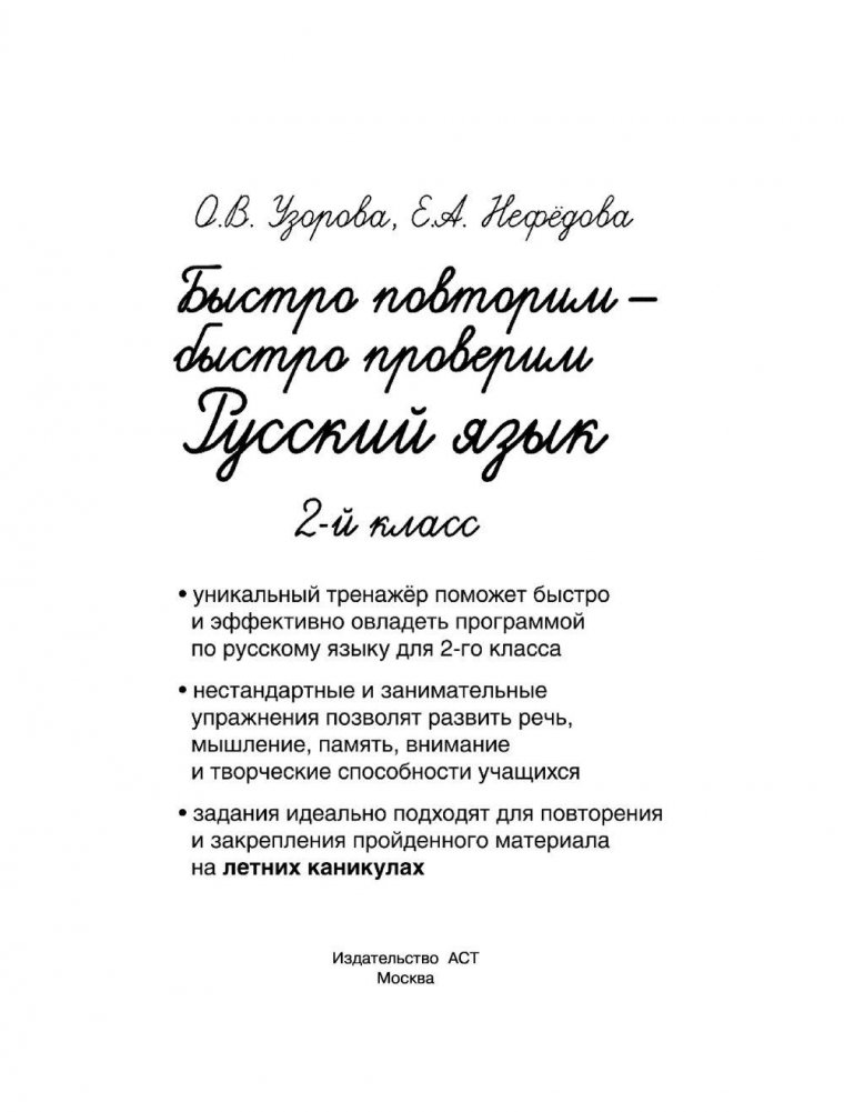 Быстро повторим — быстро проверим. Русский язык. 2 класс