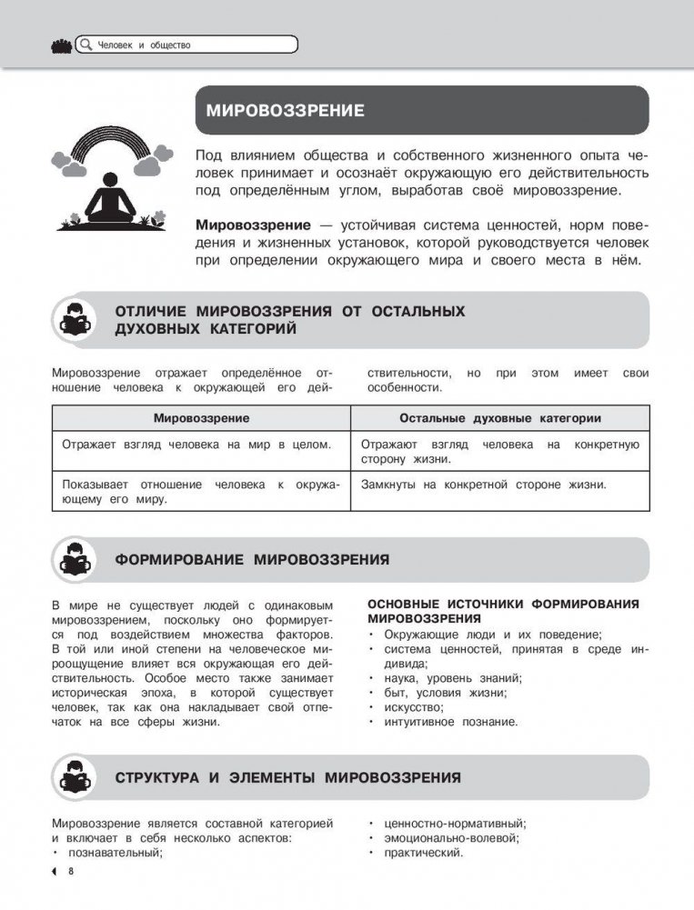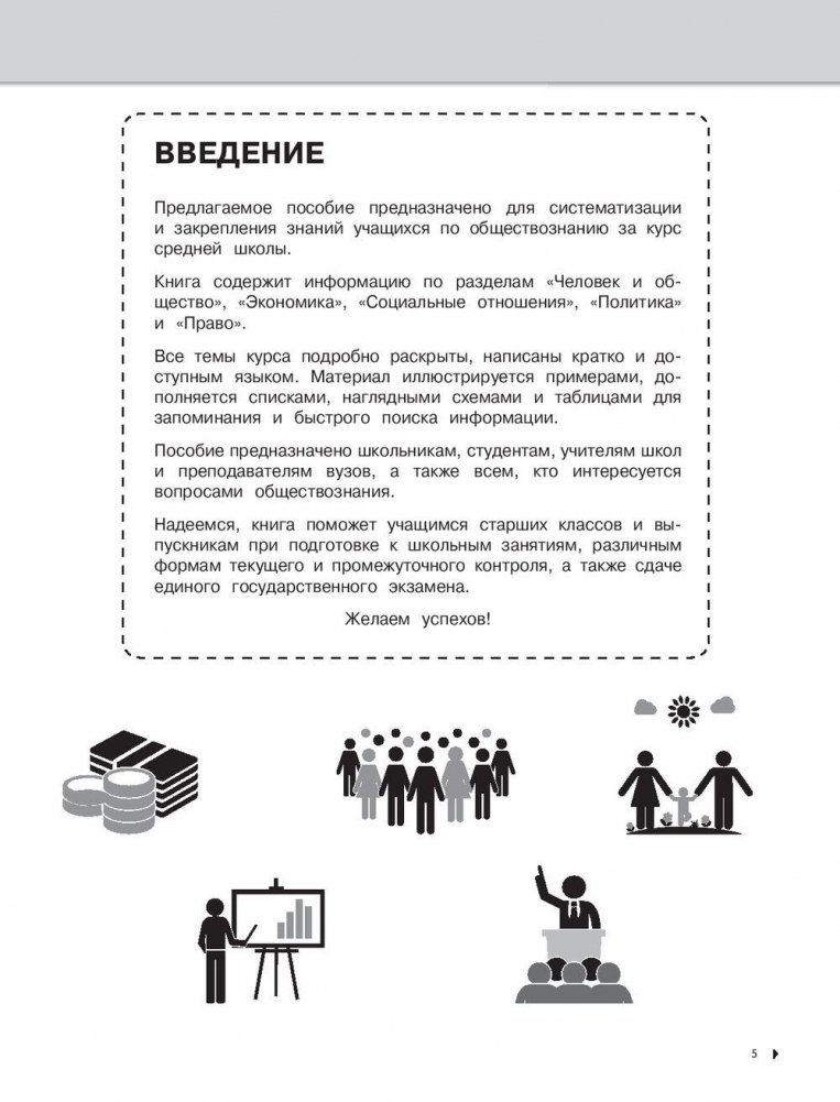 В пособии в наглядной и доступной форме приводятся сведения за весь школьный курс обществознания. Издание окажет помощь старшеклассникам при подготовке к урокам, различным формам текущего и промежуточного контроля, а также к экзаменам.