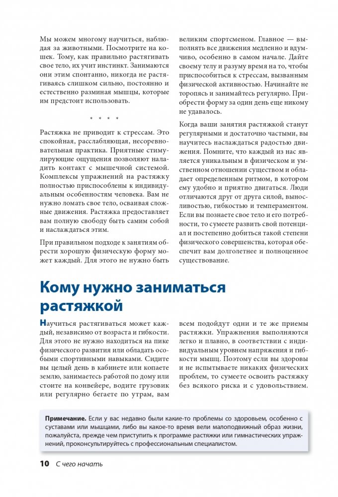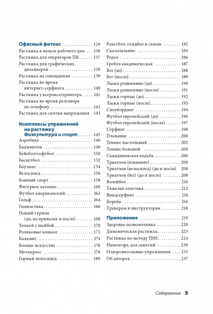 Перед вами новая редакция одной из самых популярных книг по фитнесу всех времен. Общий тираж оригинального издания во всем мире превысил 3,5 миллиона экземпляров. Книга переведена на 23 языка. Представленные в ней упражнения на растяжку эффективно развивают гибкость мышц и подвижность суставов, что позволяет интенсивно тренироваться, выполняя движения с полной амплитудой без риска возникновения травм. Что нового в этом издании? Вы найдете здесь 10 дополнительных комплексов для офисных работников и пользователей ПК, а также советы по офисной эргономике и предотвращению травм.