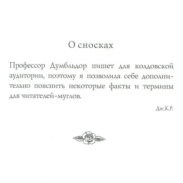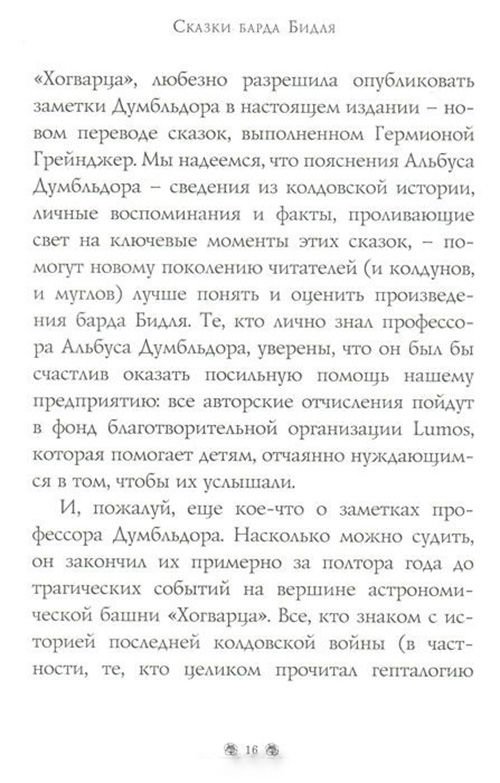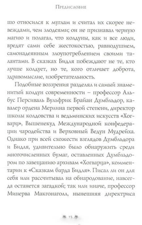 У вас в руках специальное издание «Сказок барда Бидля», знакомых всем колдунам и ведьмам с детства. Перевод с рунического сделан Гермионой Грейнджер. Автор комментариев и пояснений – самый знаменитый колдун современности, профессор Альбус Персиваль Вульфрик Брайан Думбльдор.