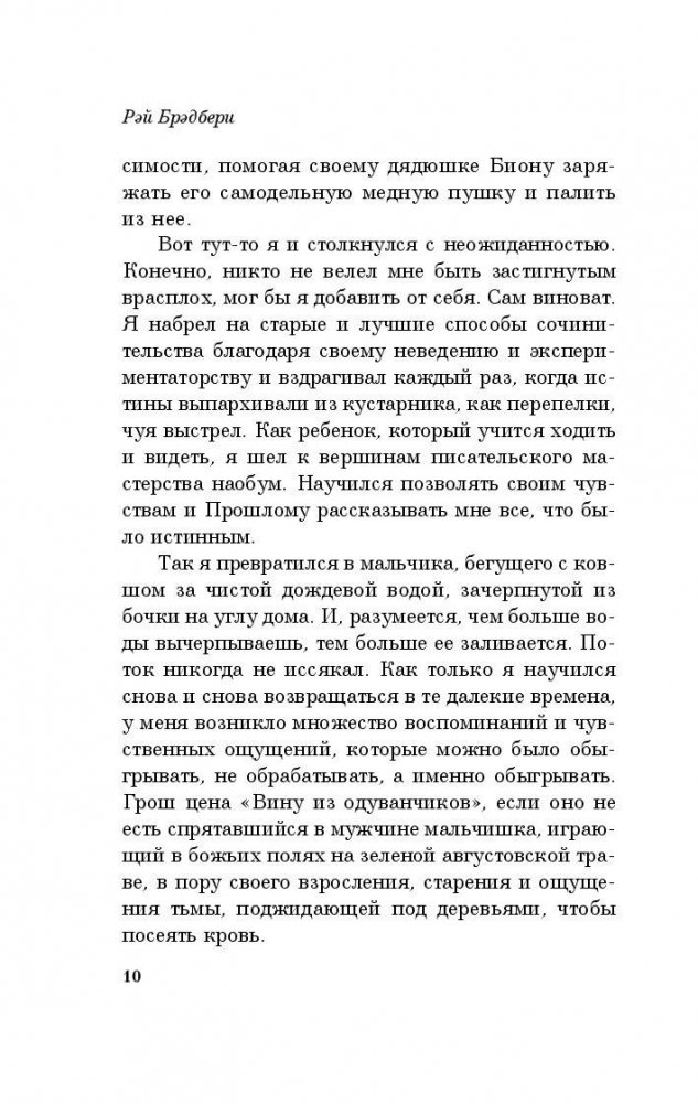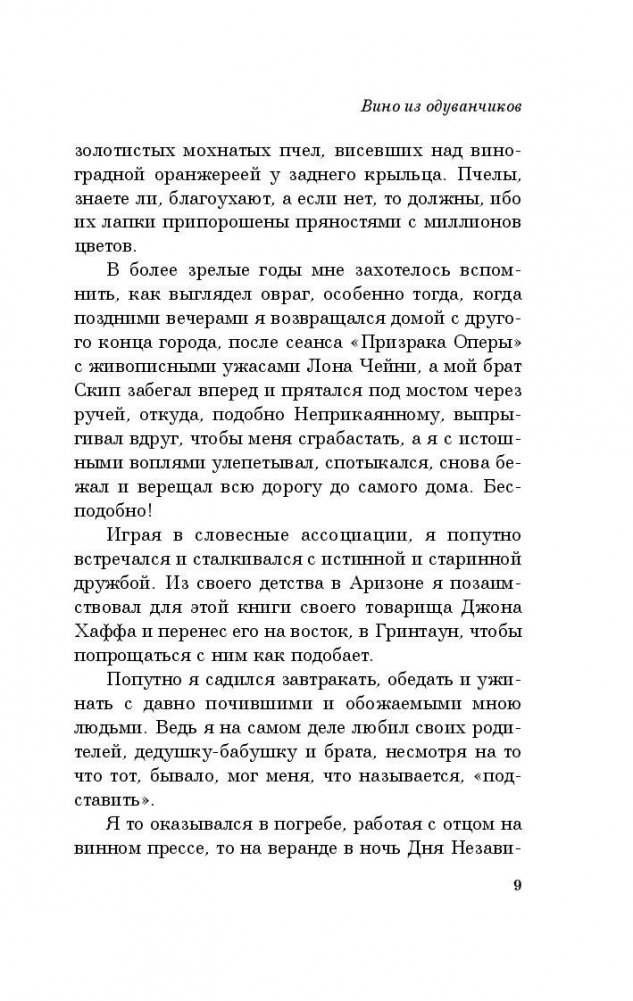 Войдите в светлый мир двенадцатилетнего мальчика и проживите с ним одно лето, наполненное событиями радостными и печальными, загадочными и тревожными; лето, когда каждый день совершаются удивительные открытия, главное из которых — ты живой, ты дышишь, ты чувствуешь! "Вино из одуванчиков" Рэя Брэдбери — классическое произведение, вошедшее в золотой фонд мировой литературы.